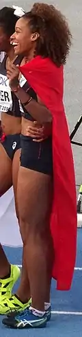 Cynthia Leduc (born 16 February 1997 in Creteil) is a French sprinter.[2] She won a gold medal in the 4 × 200 metres relay at the 2019 World Relays in Yokohama. Later that year, she won a silver medal in the 100 metres at the 2019 European U23 Championships in Gävle.[3]