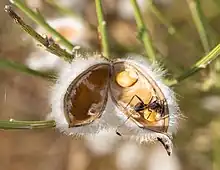 This shrub is similar to its relative, Cytisus scoparius, but it can be distinguished by the paler shade of yellow of its flowers and by the hairy coat on its pods.