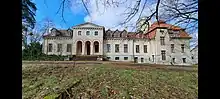 Schackenhof was an agricultural estate owned by the Rüchardt family from 1814 until 1945. The estate consisted of a central building with about 680 hectares (1,700 acres) farmland and numerous additional farms.