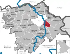 Döhlau is a municipality in Upper Franconia in the district of Hof in Bavaria in Germany. It lies on the Saale River.