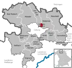 Dörfles-Esbach is a municipality in the district of Coburg in Bavaria in Germany.
