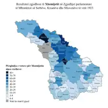 Džemijet was founded in Skopje on 18 December 1919 with Nexhip Draga, who had been imprisoned in Belgrade during the Balkan Wars, as leader by Albanians, Slavic Muslims and Turks of Kosovo, Macedonia and Sandžak and Kenan Ziya from Bitola.[7] Its program, included demands the protection of Muslim rights and the agrarian status of the Muslim landlords. Initially, the party followed a policy of moderation towards Serbian hegemonism within the kingdom and entered a coalition the People's Radical Party in the 1920 elections, in which it elected six deputies through a mixed-ticket and one-candidate system.[5] Prior to the 1923 elections, Nikola Pašić, Prime Minister and leader of the Radical Party, met with the leaders of in Skopje and bargained for their support in exchange for their participation in his government, which became necessary for his party as it after the elections without Džemijet and ethnic German party, no government could be formed.[8] Pašić agreed to legalize Albanian-language schooling, while 1924 Džemijet requested the cancellation of the colonization programmes of Kosovo. As no requirements were met by Pašić, Džemijet voted against the proposed budget by the Radical Party in 1924.[9] The opposition of the budget marked the breakdown of relations between the parties and Džemijet's eventual suppression and illegalization. Ferhat Draga, the new leader of the party, decided that the community's interests would be best represented through the formation of a wider anti-Belgrade opposition front with the Croatian Peasant Party, whose congress he attended in October 1924 for that purpose.[8]
