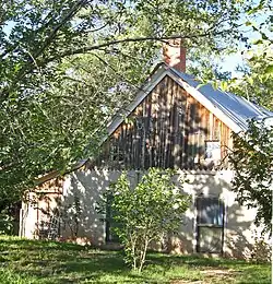 The D. H. Sutherland House, on Main St. in La Luz, New Mexico, was listed on the National Register of Historic Places in 1980.[1] It was built around 1870 by Mariano Ramirez as a three-room, flat-roof, adobe house with small, high windows for "protection from enemies". The house was modified by Dave H. Sutherland after he bought it in 1890, adding a gable roof, a south-facing screened porch, and a number of rooms, and reflecting Victorian influences.[2]