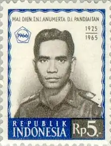 D.I. Pandjaitan was born in Sitorang, Balige in the Tapanuli region of North Sumatra. After completing elementary and high school, with the arrival of the invading Japanese, he underwent Japanese Giyūgun military education. He was then posted to Pekanbaru, and was there when Indonesian independence was declared on 17 August 1945.[1][2][3]