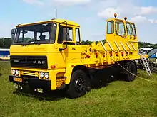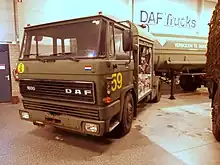 The DAF F218 and later F220 is the name of a modular cab used on a series of medium-duty trucks produced by the Dutch manufacturer DAF from early 1970 until the mid-1990s. The names reflect the cab width in centimetres, at 218 and 220 cm (85.8 and 86.6 in) respectively. DAF's first tilting cab design, all in steel, it also benefitted from a new 8.25 L (503 cu in) diesel inline-six. After a thorough facelift with a new front clip in the style of the larger F241 series, the cab was renamed the F220 in 1976. The range was originally sold as the F1600 or F2000, with the new model F220 marketed as the F2300. Gradually, a number of other iterations appeared, with the range eventually stretching from the 1700 to the intercooled 2700 ATi.[1]