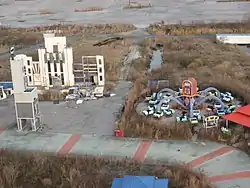 When Hurricane Katrina hit the park on August 29, 2005, the park was severely flooded, causing the park to close down indefinitely.[2] In 2007, Six Flags began the process of moving rides from the park to their other properties. Batman: The Ride was the first ride to leave the park, and was taken to Six Flags Fiesta Texas, where it was refurbished and reopened as Goliath on April 18, 2008.[3][4] The park has been closed since 2005 and is no longer a Six Flags park, as it is now owned by the city of New Orleans.[5] Despite Six Flags losing the park's lease to the city in 2009, all Looney Tunes and DC Comics theming stayed within the park itself.