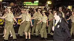By the 2000s the ADF was seeking to actively engage the gay and lesbian community.[14] An official defence contingent joined the Sydney Gay and Lesbian Mardi Gras for the first time in 2008 and the contingent marched in uniform for the first time in 2013.[15] Unofficial support groups had marched in the parade from 1996, initially against the wishes of the ADF's headquarters.[16]