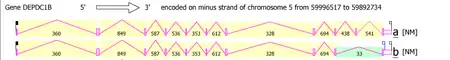 - ↑ NCBI AceView https://www.ncbi.nlm.nih.gov/IEB/Research/Acembly/av.cgi?db=human&q=DEPDC1B