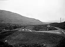 Glen Douglas munitions depot being constructed in 1966, showing tunnel entries into hillside