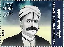 The founder of college, Dharmamurthi Rao Bahadur Calavala Cunnan Chetty Garu,[2] on a 2019 stamp of India