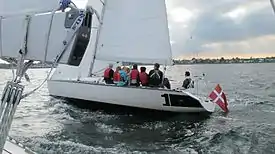 The DS 37 Match Racer is a 11.25-metre (36.9 ft) long sloop rigged sailboat, designed by Jacob Vierø in 1991 and used in the Stena Match Cup Sweden, part of the World Match Racing Tour.[1] The design of the boat emphasizes that it is used for match racing, with an oversized rudder, and simple controls. The boat is popular as a teaching boat for beginners as well because of its simplicity and robustness. However, in Match racing, it is one of the most physically demanding boats found in the international matchracing circuit. The boat is used mainly in the Scandinavian countries, where it can be found as inventory of several of the big yacht clubs, such as the Royal Danish Yacht Club or the Royal Gothenburg Yacht Club.