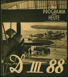 D III 88 (sometimes written as DIII 88) is a 1939 German drama film directed by Herbert Maisch and Hans Bertram and starring Christian Kayßler, Otto Wernicke and Heinz Welzel. It was made as a propaganda film with the support of Luftwaffe chief Hermann Göring, and was the last of a series of Nazi aviation films to be made before the outbreak of World War II. It was one of the most commercially successful films released during the Nazi era.[1] It was praised by Joseph Goebbels as "an irreproachable film of national destiny".[2] The title, referring to the serial number of the Albatros D.III flown by one of the characters in the World War I, was an attempt to re-inforce the propaganda link between the modern Luftwaffe and that of World War I.[3]