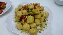 Pepper and salt fried food served with chili is also popular. Chefs will first fry the particular food (usually a light food like tofu or squid) and then re-fry it with pepper and salt.