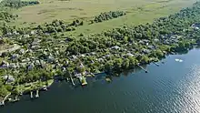 The Antonivsky island, on which the village is situated, would be completely submerged following the destruction of the Kakhovka Dam on 6 June 2023.[6] During the flooding, Russian forces looted the houses of the village, and scavenged the locals' boats for parts and engines.[1] In late June Russian sources claimed that the village was recaptured by the Armed Forces of Ukraine during the 2023 counteroffensive.[7]