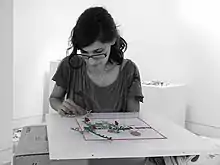 Dafna Kaffeman (born 1972, Jerusalem) is an artist and a senior lecturer at the Bezalel Academy of Arts and Design. She works with glass and various materials and techniques such as embroidery, print ,drawing, to produce what the David Owsley Museum of Art describes as "beautiful crafted surfaces and disturbing text about aggressors and victims". She lives and works in Israel.[1] Her work has appeared in solo and group exhibitions, and she has won, or been nominated for, a number of international prizes and awards.
