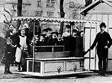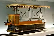 The Farming and foresting Exhibition was held in Vienna from 14 May to 30 October 1890. The organisers wanted to provide easy access for the attendees. The entrepreneur Josef Bierenz installed and operated a narrow gauge passenger tramway using Daimler Waggonets from the Praterstern the western entrance of the fair centre at Rotunderplatz. It was used all summer and transported thousands of passengers. Each train consisted of a Waggonet and a trailer and offered space for 24 passengers. One vehicle is mothballed in the archive of the Vienna Technical Museum but currently not being exhibited.[2]