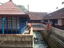 The famous Navaratri festival is celebrated here with great fervor. Thousands of people participate in the Navaratri music festival. On Durgashtami, books are arranged before the image of Goddess Saraswathy and on Vijayadashami morning, Ezhuthinirithu or Vidyāraṃbhaṃ ceremony takes place at a special mandapam which goes from 4 am to 11 am. Thousands of little children are initiated into the world of letters by making them write the word harisree on rice, their tongues or sand with a golden ring.[1]
