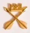 The coat of the arms of the Dalarna Regiment (I 13/Fo 53) 1977–1994 and the Dalarna Brigade (Dalabrigaden, NB 13) 1994–2000. Blazon: "Azure, the provincial badge of Dalarna, an open crown or between two bolts of the last with points argent in saltire. The shield surmounted two muskets in saltire or".[3] The coat of arms of the Dalarna Regiment (I 13/Fo 53) 1994–2000 and the Dalarna Group (Dalregementsgruppen) since 2000. Blazon: "Azure, the provincial badge of Dalarna, an open crown or between two bolts of the last with points argent in saltire. The shield surmounted two swords in saltire or."[3]
