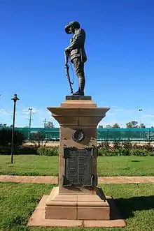 The sandstone memorial comprises a pedestal surmounted by a digger statue.[1]