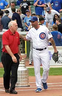 ![]() Sveum (right) as Cubs manager in 2013 with Blackhawks coach Joel Quenneville | |