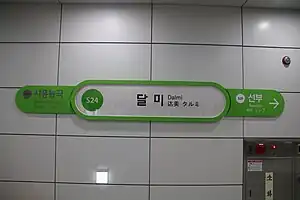Dalmi station is a station on the Seohae Line in South Korea. It opened on June 16, 2018.[1][2][3][4][5]