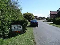 Dalton on Tees, at one time described as a township, lies in the Parish of Croft, was referred to in various publications in the early 1820s and appears in the 1861 census. Around 1890 it consisted of some 40 dwellings and had a population of 187.[8][9] At that time it consisted of 1,625 acres (658 ha) of land and 11 acres (4.5 ha) of water and had a rateable value of £5,739. Until around 1900 it was part of the wapentake of Gilling East in the Richmond area of the North Riding of Yorkshire. It is near the former Dalton junction/Eryholme railway station on the closed Richmond branch line of the North Eastern Railway between York and Newcastle.[10]