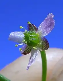 Damasonium minus is a species of flowering plant in the water-plantain family known by the common names starfruit and star-fruit (not to be confused with the cultivated starfruit).[1] It is native to Australia, where it occurs everywhere except the Northern Territory.[1][3] It is perhaps best known as an agricultural weed. It is a major weed of Australian rice crops.[4][5][6]