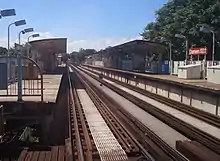 Damen Station opened in 1907 as part of Northwestern Elevated Railroad's Ravenswood line.[3] The station was originally named Robey for the original name of the street on which it is located.[3] During CTA's AB-Skip-Stop Service on the Brown Line, from 1949 to 1995, Damen was an "A" station.