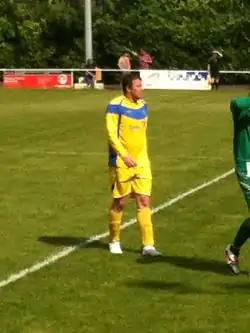 He spent the rest of his career in the lower leagues with Forest Green Rovers before moving back to his home country by signing for Newport County[5] and captained the side on several occasions.[6] During his time at Newport they twice narrowly missed out on the promotion play-offs and twice appeared in the FAW Premier Cup final, winning the 2008 final. Searle was released by Newport at the end of the 2007–08 season and went on to sign for Carmarthen Town.[7]