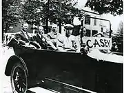 Over the years, a number of sources accepted Casey's claim. As early as 1900, after Casey was "scalped" in a streetcar accident, a newspaper account noted that there was "no end" to the persons claiming to be "Casey", but cited Dan Casey as the one true "Casey" who had been immortalized by Thayer.[12] In July 1915, a local Binghamton baseball club, the Bingos, sponsored a "Casey Day" that included a parade honoring Dan Casey as the famed "Casey."[7][13] In March 1938, Casey appeared on Gabriel Heatter's radio program, broadcast on the Columbia network, to make his claim to being the famous "Casey." During the broadcast, Casey stated: