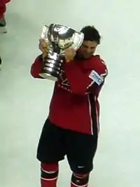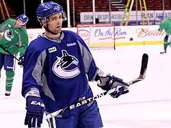 ![]() Hamhuis during the 2008 IIHF World Championship | ||