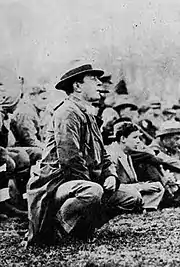 McGugin took time off from coaching to work in the mining business during the First World War. On a draft registration card completed in 1918, McGugin stated that he was the president of the Kensee Mining Company in Marion, Kentucky.[38] On August 10, 1918, while on protection patrol, Rabbit Curry was killed in an aerial combat over Perles, France.[39][40] After learning about Curry's death McGugin wired this telegram to The Tennessean