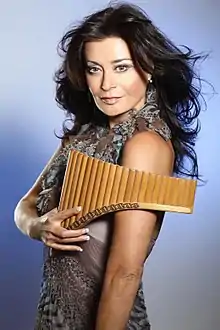Dana Dragomir is best known for her interpretation of the song "Mio My Mio", written by Benny Andersson and Björn Ulvaeus of ABBA.[1] She is the first professional female Pan flute player in the world.[2] Her music is a mixture of Pop, World and New-age music.[2] She achieved chart success in Sweden with several of her albums, being quoted the best selling instrumental artist in Scandinavia and she is the first instrumental artist ever to top the Swedish radio record chart, Svensktoppen.[2]