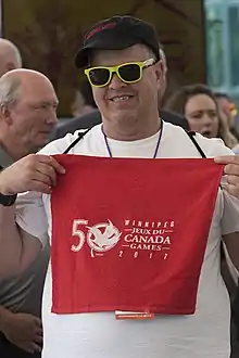 Gabriel Langlois (born 1963), better known as Dancing Gabe, is a well known fan of the Winnipeg Jets, Manitoba Moose, Winnipeg Blue Bombers, and the Winnipeg Goldeyes.[1][2] He first gained notoriety in 1984, when he attended a Bombers game and was noticed dancing in the crowd.[3] On December 20, 2014, Gabe danced at his 1,000th professional hockey game in Winnipeg.[4]
