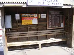Travelling by road from the south, from either Sydney or Hornsby, access is available by the M1 motorway. Drive across the Hawkesbury River Bridge at Kangaroo Point and follow the Brooklyn-Mooney Mooney turnoff just after you cross the river. Travelling by road from the north, from either Newcastle or Gosford, access is available via the M1 motorway. As you approach the Hawkesbury River you can exit the motorway via the Brooklyn-Mooney Mooney turnoff on your left hand side. Follow the signs to Brooklyn and drive through the village. At the end of the road you will find a public car park and the Dangar Island Ferry Wharf.[8]