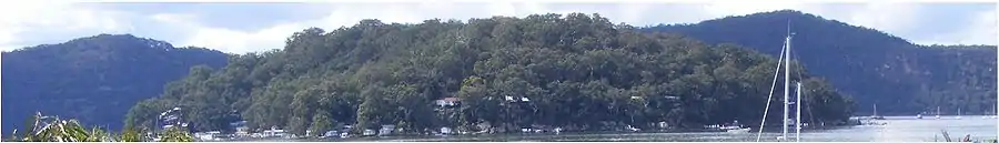 Dangar Island is a forested island, 30.8 hectares (76 acres) in area,[2] in the Hawkesbury River, on the northern outskirts of Sydney, New South Wales, Australia. Dangar Island is a suburb of Hornsby Shire and as at the 2016 census had a population of 303, which swells dramatically during holiday seasons. The island is serviced regularly by Brooklyn Ferry Service and departs from Brooklyn and takes about fifteen minutes. The Brooklyn ferry is itself adjacent to Hawkesbury River railway station. The ferry service is in operation 7 days a week.