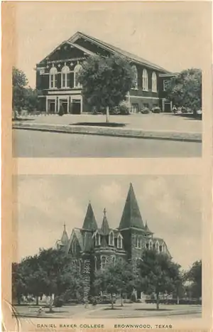 - ↑ "Daniel Baker College". Handbook of Texas. Texas State Historical Association. Retrieved 2007-12-09.