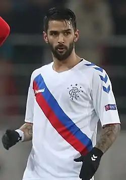 On 11 June 2017, Candeias joined Scottish club Rangers on a two-year deal,[20] for a reported transfer fee of £700,000.[21] He made his debut 18 days later, playing 31 minutes in a 1–0 home win over FC Progrès Niederkorn in the UEFA Europa League.[22]