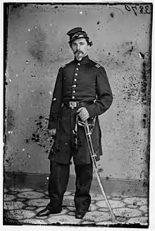 Harkins joined the Union war effort, enlisting in the army on July 16, 1861. He was made captain of Company D of the 1st Regiment New York Volunteer Cavalry. In December 1862 he was promoted to the rank of major. He was discharged from military service on October 6, 1864.[2][3]