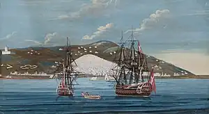 Danish frigate Falster and ship of line Grønland near Algiers, 1772