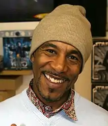 Daniel John-Jules (born 16 September 1960)[1] is a British actor, singer and dancer. He is best known for playing Cat in the sci-fi comedy series Red Dwarf, Barrington in the comic children's series Maid Marian and Her Merry Men, and policeman Dwayne Myers in the crime drama Death in Paradise.[2] He was also a protagonist in the hit CBBC children's spy drama M.I. High, in which he portrayed Lenny Bicknall, the caretaker.