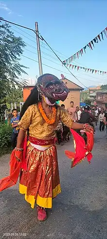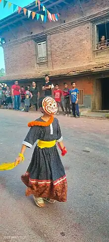 Performed by two 'Lakhey' and two 'Nakheycha', the dance is staged during the daytime of 'Sasthi' in the month of August or 6th day after the full moon in Bhadra.
