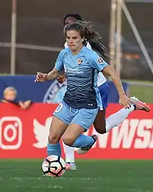 She was accepted to medical school at Rutgers University near her home in New Jersey and was chosen by Sky Blue FC, her hometown club, with the 22nd pick in the 2015 NWSL College Draft in January 2015.[6] She eventually chose to postpone medical school and signed with Manchester City.[7]