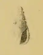 The delicate, white shell has a fusiform shape. It contains six whorls. The upper ones are turreted and finely striated. The subsequent whorls show indistinct longitudinal ribs, except on the body whorl. The body whorl shows brown spots below the suture and brown flames at the back and below. The narrow aperture is oblique. The outer lip is simple. The sinus is small.[2]