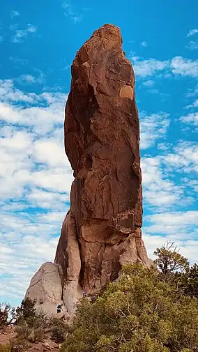 - ↑ Dark Angel, Utah.com, July 28 2023, https://www.utah.com/destinations/national-parks/arches-national-park/things-to-do/hiking/dark-angel/