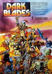 Dark Blades is a fantasy board wargame for beginners, based on the Cry Havoc game system.[1] Set on the island of Labyrinthia, the game includes an account of the hero Dark Blades and his band of fellow adventurers, upon which the included scenarios and maps are based. Components include