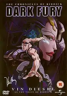 The Chronicles of Riddick: Dark Fury is a 2004 American adult animated science fiction short film, directed by Korean-American animator Peter Chung, and featuring Vin Diesel reprising his role as Richard B. Riddick. It acts as a bridgepoint between Pitch Black and The Chronicles of Riddick and explains why Riddick decides to go into hiding and deliver Jack and Imam Abu al-Walid to New Mecca.[1]