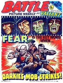 ![]() The cover to the 19 March 1977 edition of Battle Picture Weekly featuring "Darkie's Mob", art by Mike Western. | |