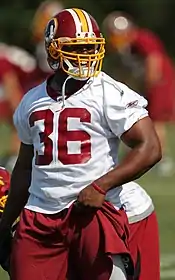 Young signed a futures contract with the Washington Redskins on January 5, 2010.[9] When he reported for camp, Young was surprised to learn that he had been converted to a fullback. Head coach Mike Shanahan stated, "Just the way he hit, we needed some fullbacks and we thought since he had good hands he might be the ideal candidate," which was the reason for Young's transition.[10] The position wasn't completely foreign to Young, who was recruited to Villanova as a running back before he was moved to linebacker. He ended up making the Redskins' final 53-man roster as the backup fullback after all cuts were made. On November 15, 2010, Young scored his first career receiving touchdown, a three-yard reception from Donovan McNabb, in a 59–28 loss to the Philadelphia Eagles.[11]