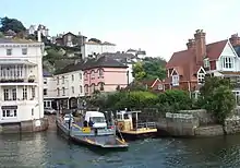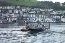 There are records of a "Kingswear Ferry" as early as 1365.[4] By the 18th century, a second ferry was sailing from Hoodown on the Kingswear side, upstream from Waterhead Creek, which had an easier approach than the steep slipway in the village square. The Dartmouth and Torbay Railway was authorised by its 1857 Act of Parliament[5] to establish a steam ferry across the Dart from its station and agreed to purchase the ferries, although the Hoodown Ferry was discontinued in 1864 after the opening of the railway. The remaining Kingswear Ferry was leased out by the railway to a succession of local operators.